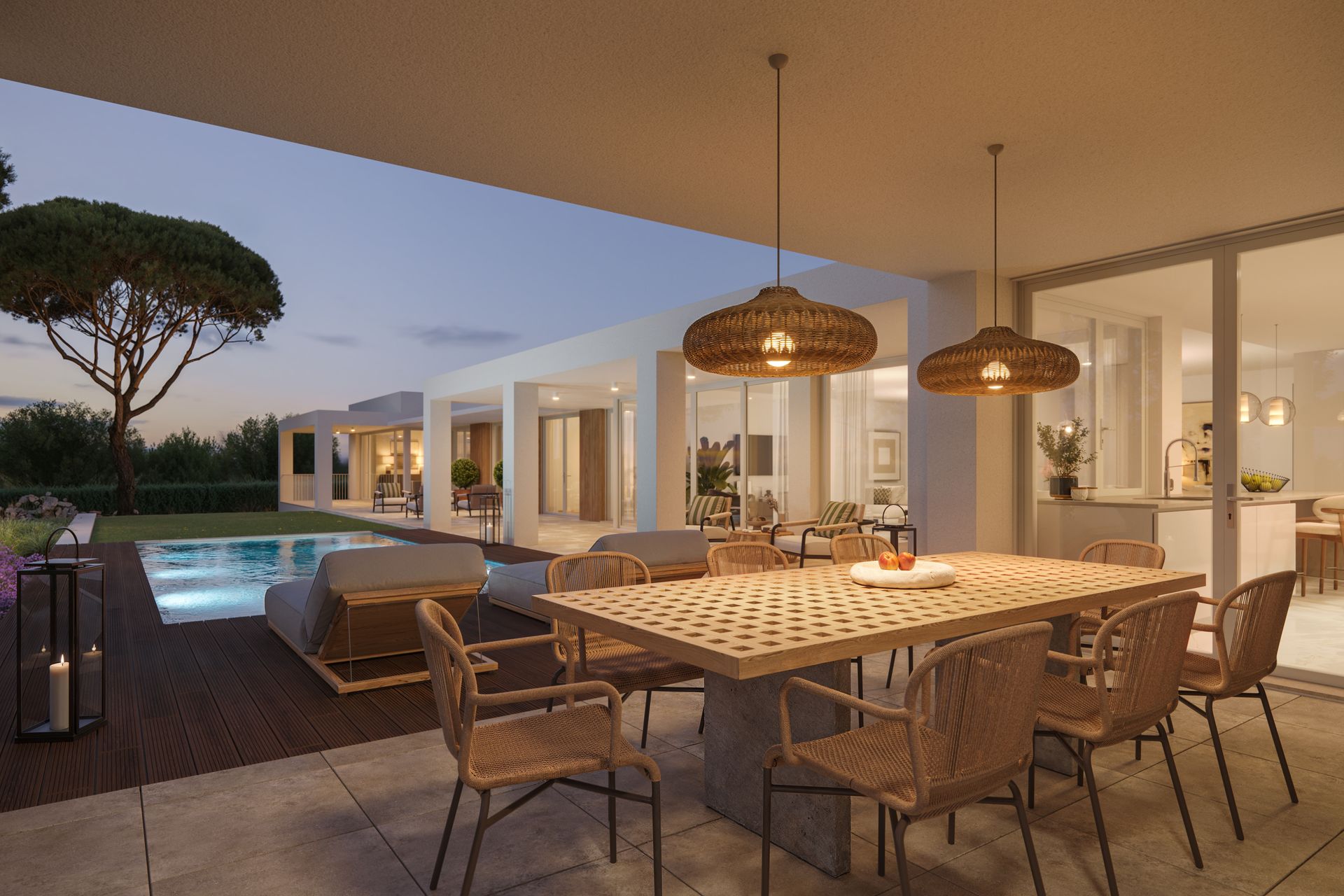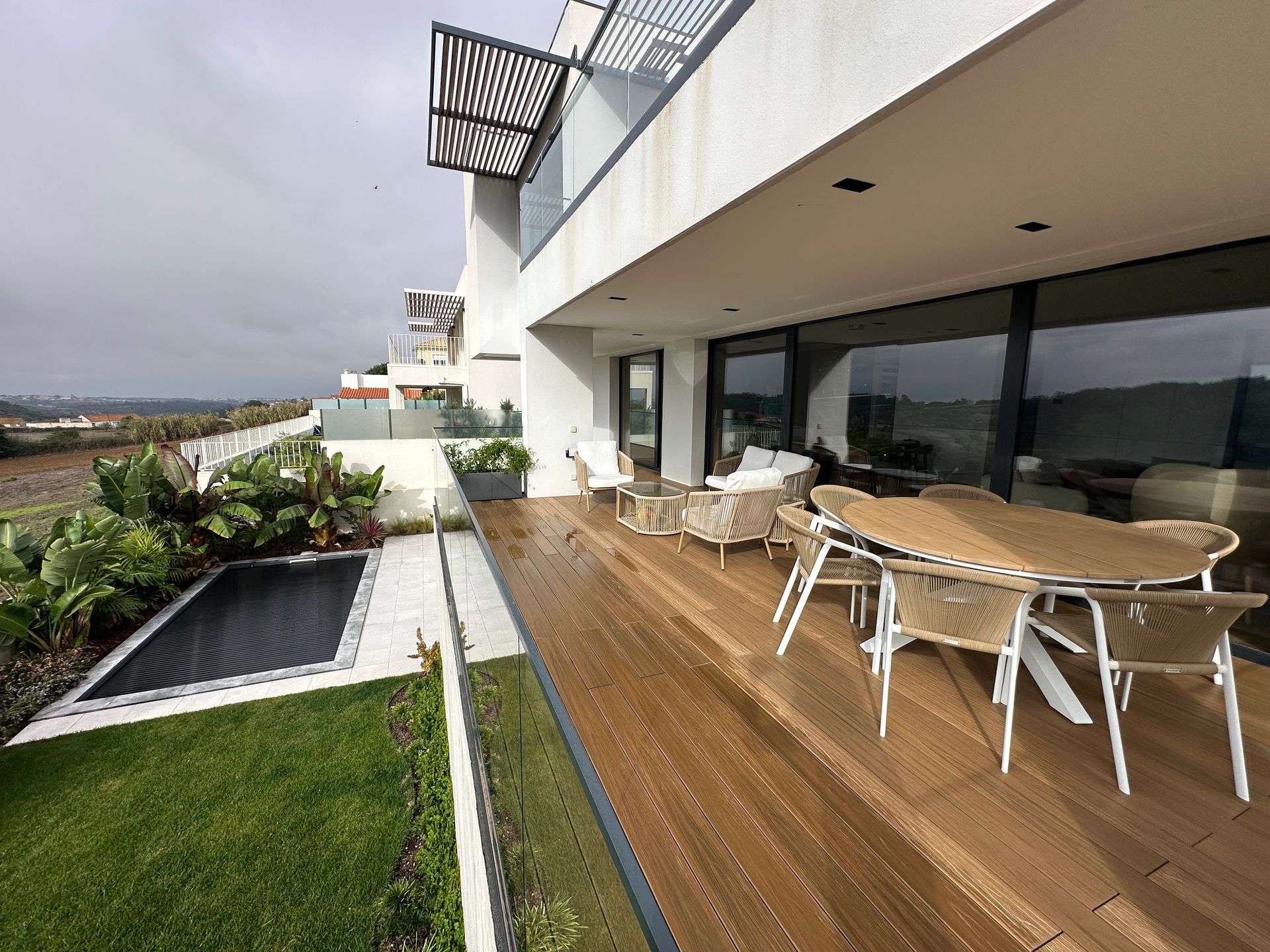 Inspired by the traditional Cascais summer architecture, the project integrates light, openness, and a strong connection to landscaped outdoor areas. The condominium offers extensive gardens, controlled access, and amenities such as two swimming pools, a gym, sauna, mini-golf, a children’s playground, 24-hour security, and guest parking.